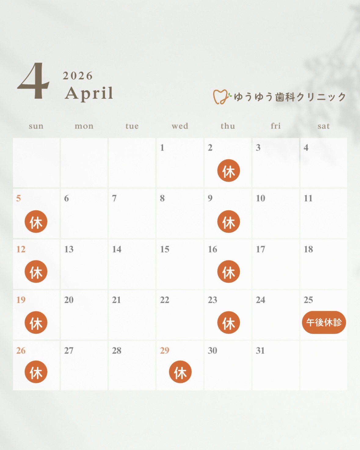 ※5月29日(木)は終日診療いたします。